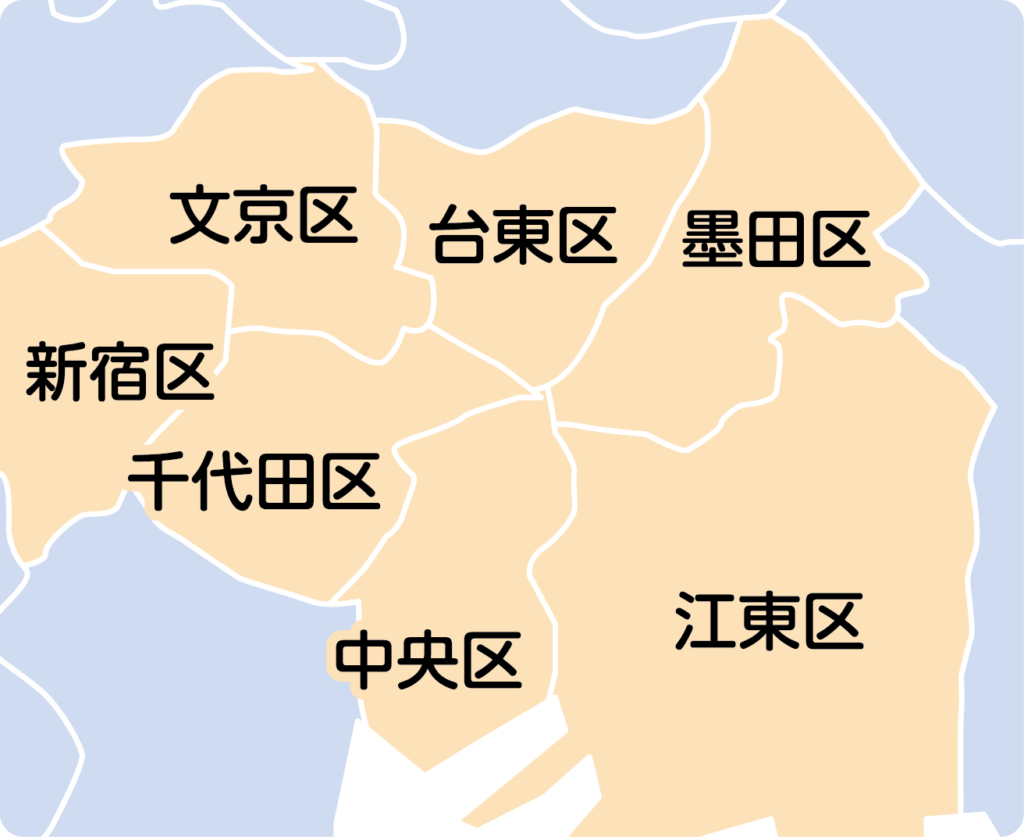 ・ 台東区を中心に千代田区、中央区、新宿区、文京区、墨田区、江東区